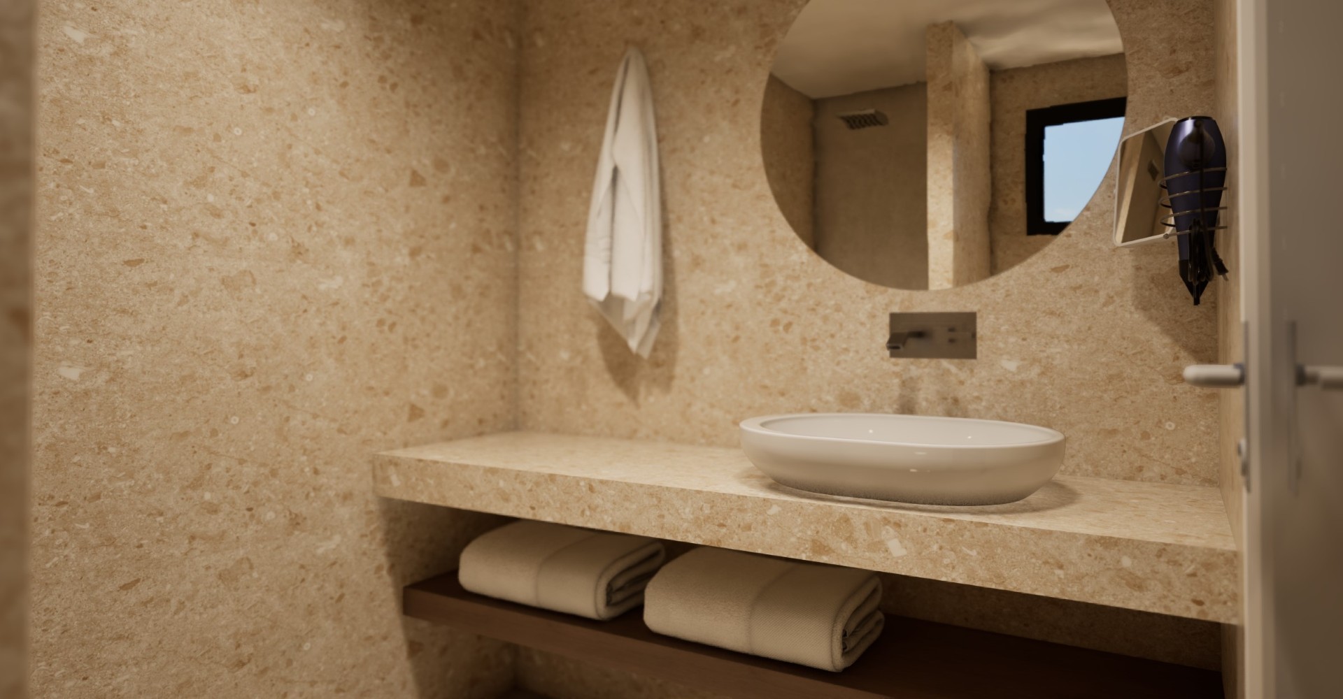 Dryer, Safety Deposit Box and of course, amenity pack, bathrobe, slippers and luxury bed linen and towels!