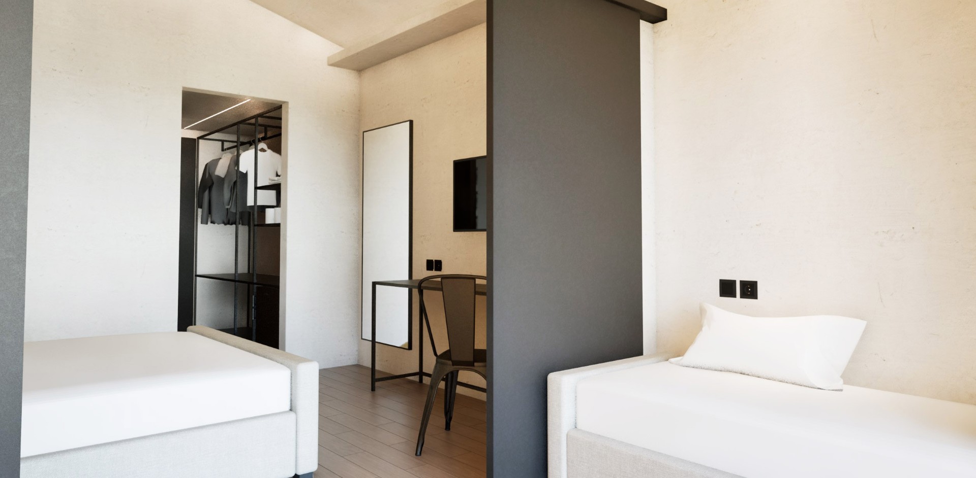They are consisted of two separate sleeping areas, one with a king-sized double bed and one with tow single beds, all with high-quality anatomical mattresses and one bathroom with a with walk-in shower!